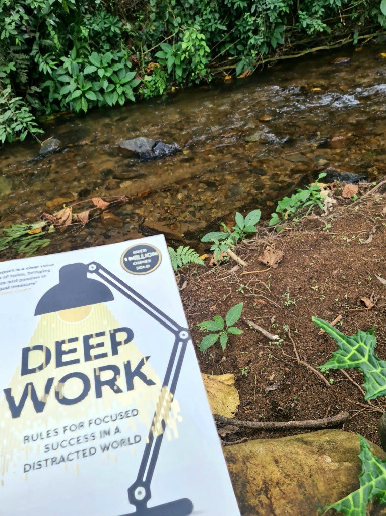 I truly recommend this book titled “Deep Work” by Cal Newport. This book describes deep work as “professional activities performed in a state of distraction-free concentration.” These activities push your cognitive capabilities to their limit. These efforts create new value, improve your skill, and are hard to replicate”. The psychiatrist Carl Jung built a tower out of stone in the woods. He aimed to promote deep work in his professional life. It took him away from immediate pursuits. I read the most part of this book, seated by a river, a perfect setting for deep work. When I retreat into nature, my mind is rejuvenated and my creativity is boosted. I fully understand and experience what the author means when he describes deep work as valuable, rare and meaningful. Dear reader, How do you feel when you retreat into nature to study or meditate?